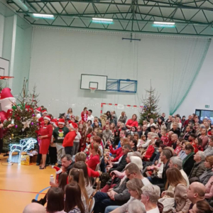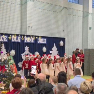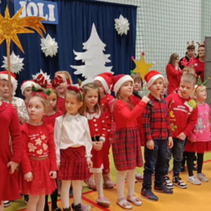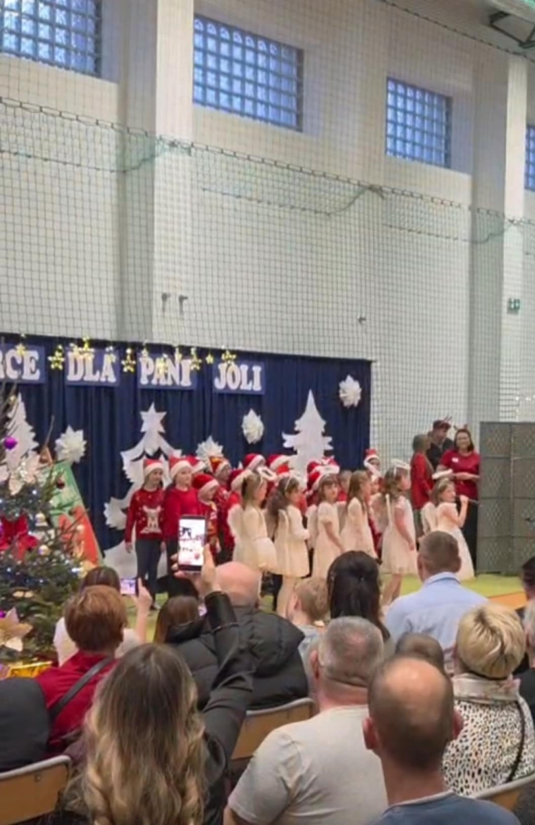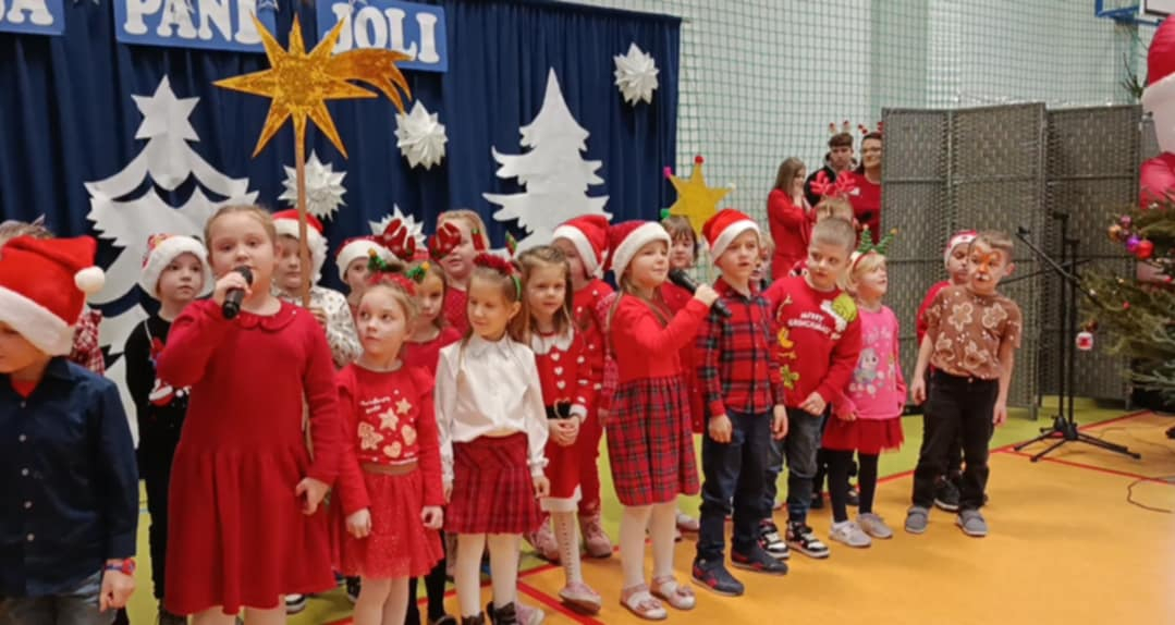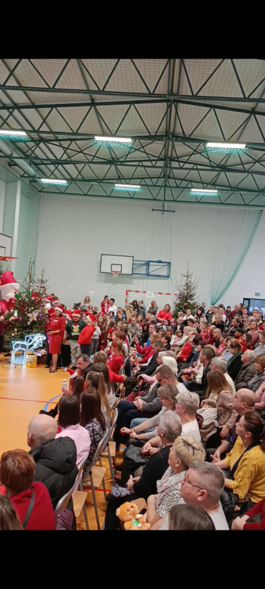 Pani Dyrektor serdecznie powitała licznie zgromadzonych gości. Następnie zaprezentowały się wszystkie klasy, od najmłodszych przedszkolaków po uczniów klas ósmych. Każda grupa zaśpiewała wybraną przez siebie kolędę lub pastorałkę. Niespodzianką był solowy występ absolwentów szkoły – wychowanków Pani Joli, a także wspólny występ wszystkich nauczycieli. Oprócz występów wokalnych atrakcją był taniec świąteczny w wykonaniu uczennic z klasy ósmej. Atmosfera podczas koncertu była radosna i pełna wzajemnej życzliwości, a świątecznie udekorowana hala gimnastyczna i zapach pierniczków wprowadził wszystkich w magiczny klimat Świąt Bożego Narodzenia.