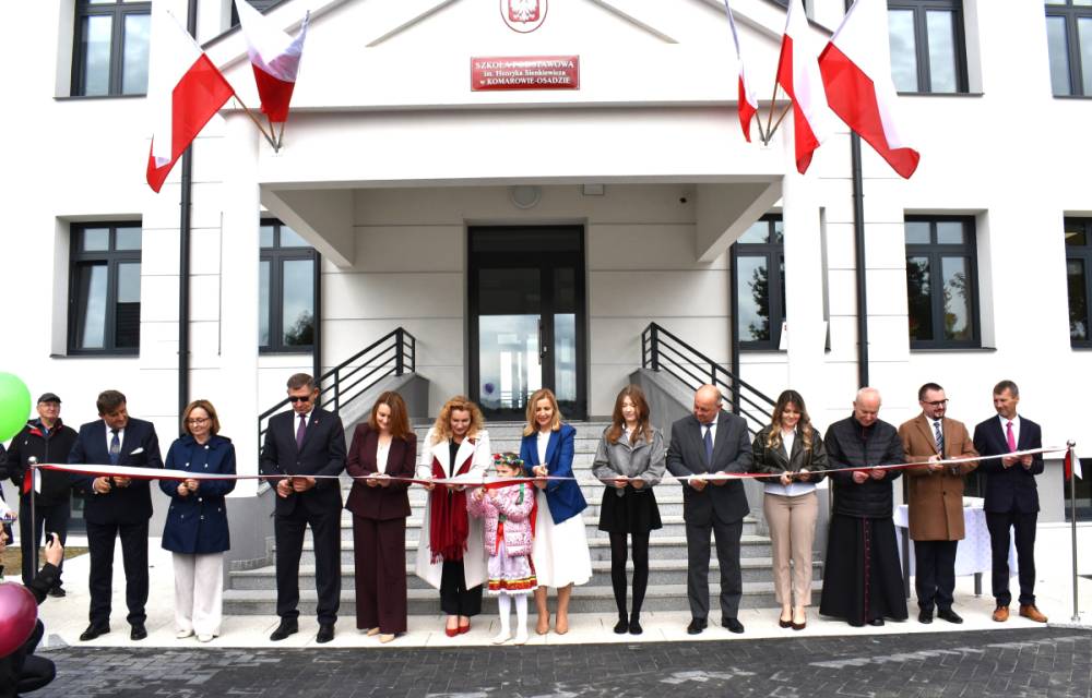 Uroczyste otwarcie nowego, zmodernizowanego budynku Szkoły Podstawowej im. Henryka Sienkiewicza w Komarowie – Osadzie, które odbyło się 1 października 2025 r. zgromadziło wielu gości, przedstawicieli władz lokalnych uczniów, rodziców, dyrekcję szkoły z nauczycielami oraz pracownikami, emerytowanych nauczycieli, a także mieszkańców gminy.