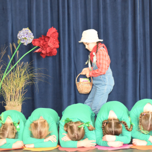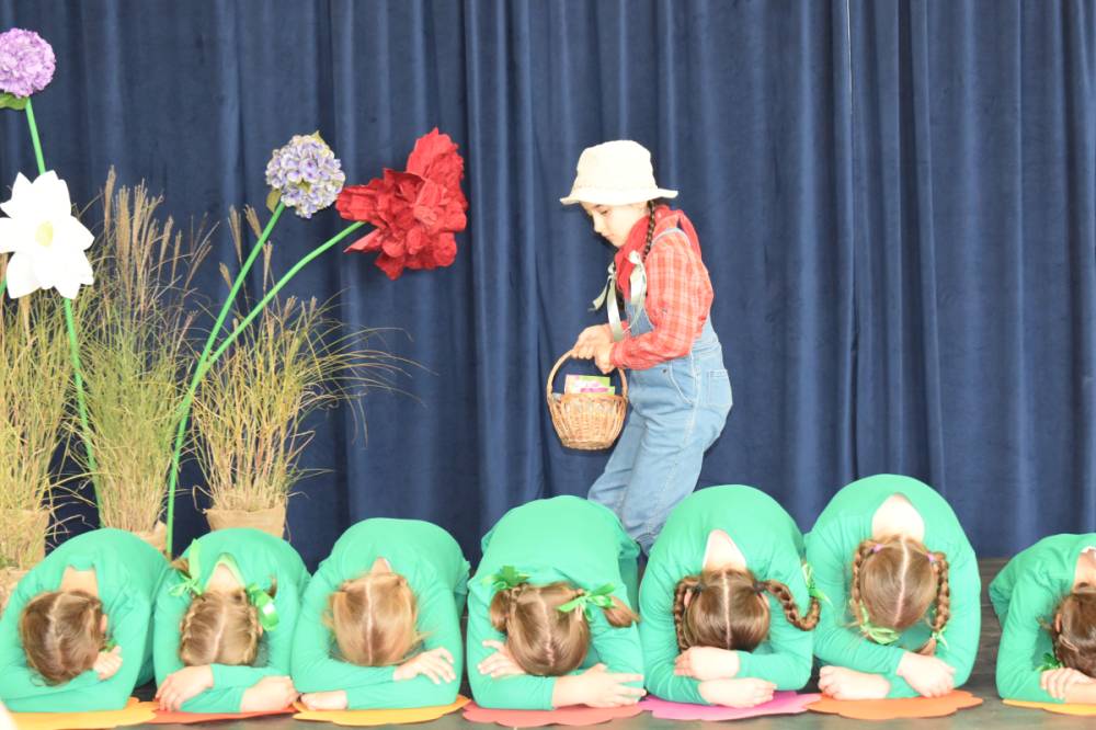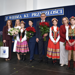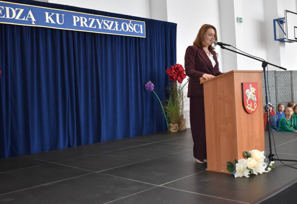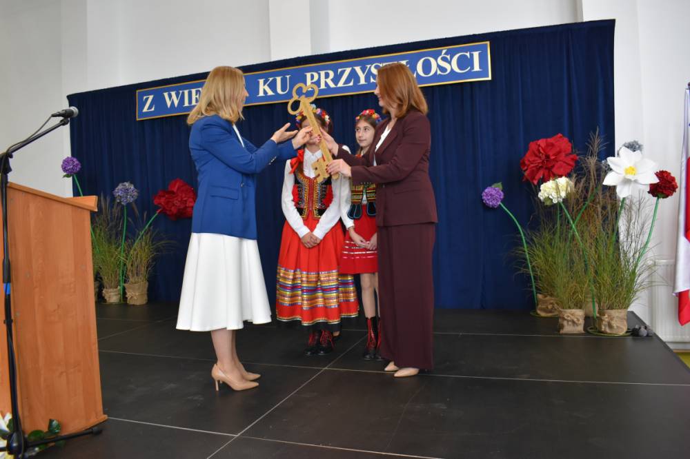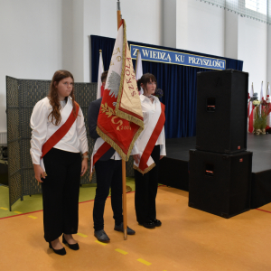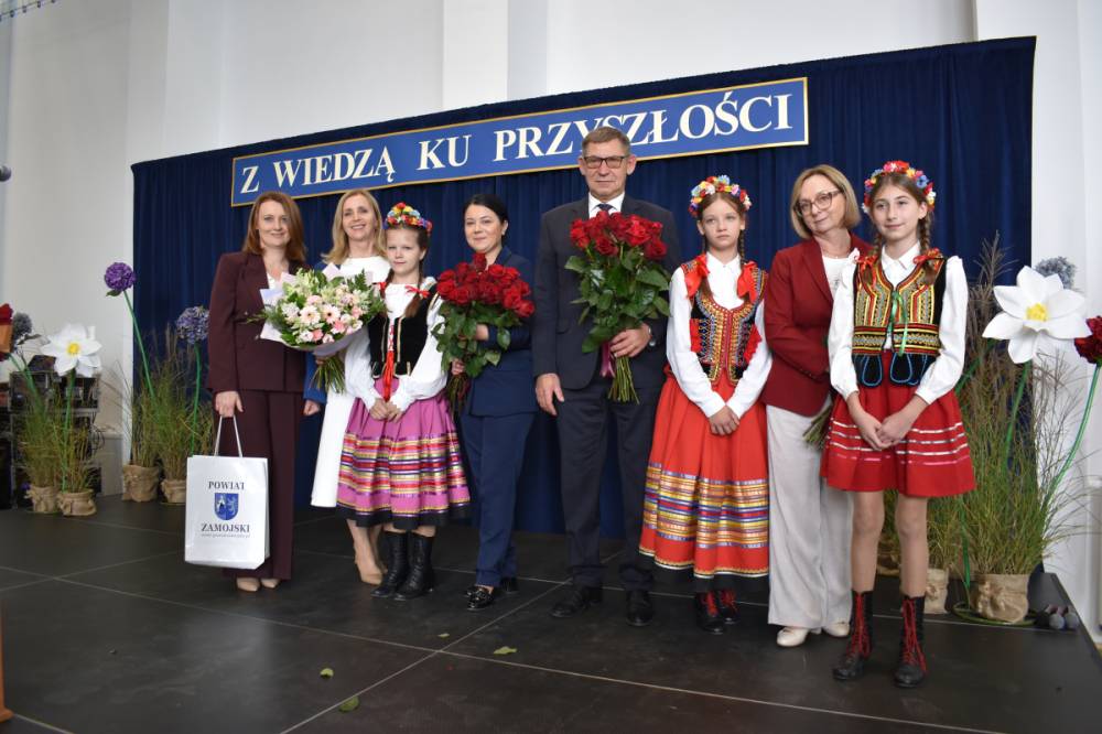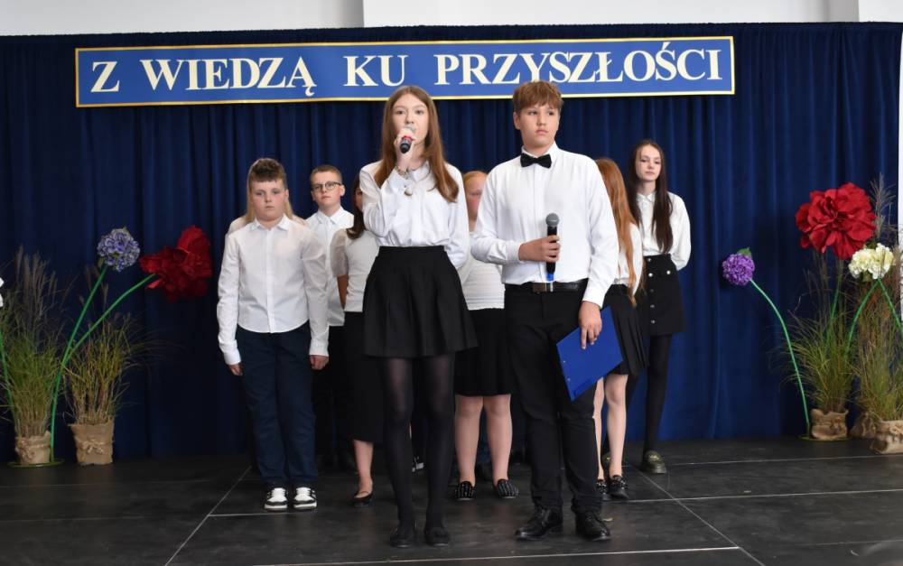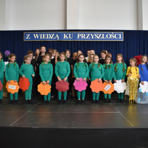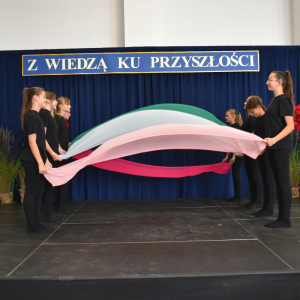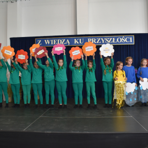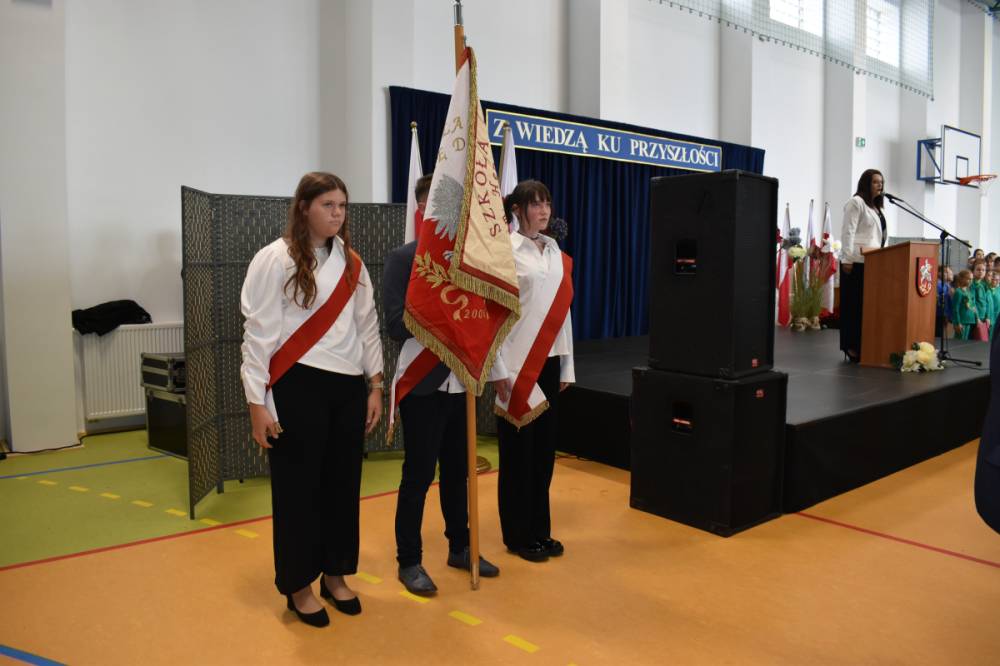 Uczennice klasy III a i III b, w składzie Dorota Zrol, Maja Palichleb, Martyna Bil, Kaya Kołodziejczyk, Hanna Białoszewicz, Maria Brudnowska, Julia Krosman, Maja Tujak, Magda Kościuk, Kornelia Załoga, Natalia Kukiełka, Marika Winnik, Aleksandra Kawa, Emilia Bełz :przedstawiły inscenizację, która poprzez symbolikę rosnących kwiatów pokazała jakie piękne wartości wyrosną w nas, kiedy będą odpowiednio pielęgnowane. Część artystyczna mówiła nam, że szkoła, choć nowa, to tak naprawdę ma swoją historię, tradycję i wyjątkowy klimat, który można poczuć już pierwszego dnia. To, nie tylko miejsce nauki, ale też przestrzeń inspiracji, współpracy i radości dzieciństwa. Patronem jest pisarz Henryk Sienkiewicz, który w swoich utworach pokazuje jakie wartości są w życiu ważne, jakich wyborów należy dokonywać, by żyć mądrze i właściwie. Celem widowiska było ukazanie, że szkoła to wyjątkowe miejsce w życiu każdego człowieka. To ona otwiera tysiące możliwości i pomaga wybrać tę jedyną słuszną drogę.