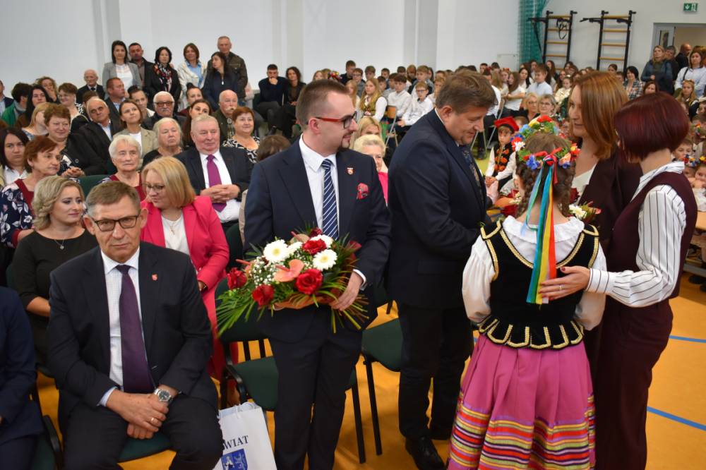 Zaproszeni goście z podziwem i uznaniem oglądali nowy, wyremontowany budynek, który ma służyć dzieciom i młodzieży z terenu naszej gminy. Jednak największą radość można było zobaczyć na twarzach uczniów, którzy z zadowoleniem i przyjemnością oglądali miejsce, które będzie ich drugim domem. Budynek szkoły po modernizacji stał się nowoczesną placówką edukacyjną, która stawia na indywidualne podejście do ucznia, kreatywność i rozwój pasji już od najmłodszych lat. Obiekt zyskał duże sale, w których znajdują się interaktywne tablice oraz bogate zaplecze dydaktyczne, tak by nauka stała się przyjemnością. Specjaliści pracujący w placówce zyskali nowe gabinety do zajęć indywidualnych . Szkolne korytarze stały się przestronne, posiadają kąciki do odpoczynku i spędzania czasu z kolegami. Choć cały remont trwał dwa lata to wszyscy jednogłośnie stwierdzili, że warto było czekać, ponieważ cała inwestycja przeszła najśmielsze oczekiwania.