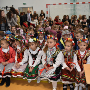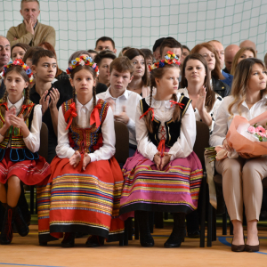 Swój głos, w tym dniu mogła zabrać również młodzież szkoły, która przygotowała pod okiem: Pani Lidii Boguszewskiej – Więcek, Pani Justyny Szeremeta, Pani Katarzyny Zastąpiło, Pani Lidii Winniczuk, Pani Magdaleny Bil, Pani Natalii Skiba, Pani Eweliny Piliszczuk bogaty okolicznościowy program artystyczny, poprzez który wyraziła wdzięczność wszystkim, którzy w jakikolwiek sposób popierali budowę tego obiektu. Szczególne słowa uznania otrzymała Pani Wójt Gminy Komarów – Osada Wiesława Sieńkowska, która podjęła ważną decyzję, że inwestycja w coś ,co służy najmłodszym mieszkańcom gminy ma sens. Uczennice klasy Va i Vb w składzie: Katarzyna Bajwoluk, Amelia Fizia, Julia Hanc, Julia Marucha, Emilia Naworol, Oliwia Rudy, Sabina Śmiech, Julia Zastąpiło, zaprezentowały piękny taniec flag. Utwory zaprezentowane przez uczniów to: „Pięknie żyć” w wykonaniu Mateusza Kopra i Barbary Bakun, „Nie bój się chcieć” w wykonaniu Leny Fanfara i Oliwii Bardzińskiej, „ Bo świat to my” w wykonaniu: Natalii Mazurek, Jakuba Skawińskiego, Jakuba Dołby, Barbary Bakun i Leny Fanfary.